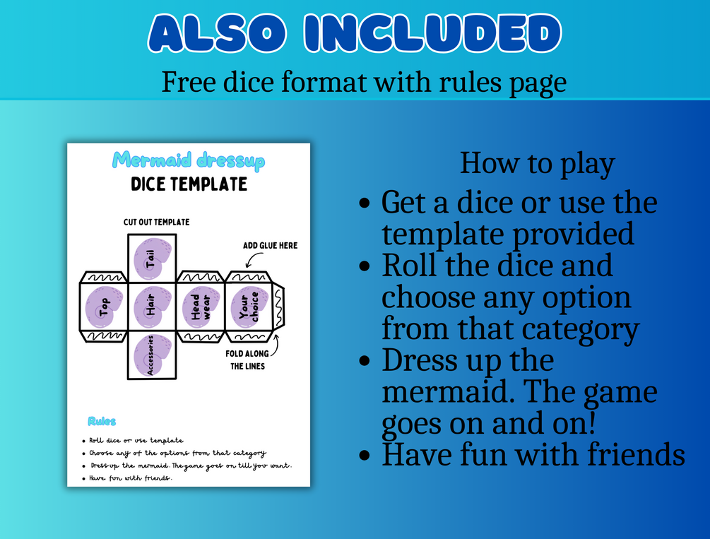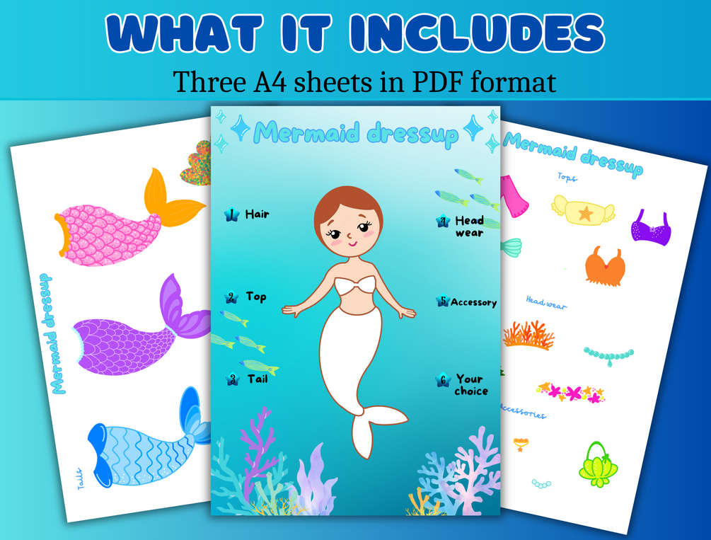 MERMAID DRESSUP game kids activity birthday party game instant download printable