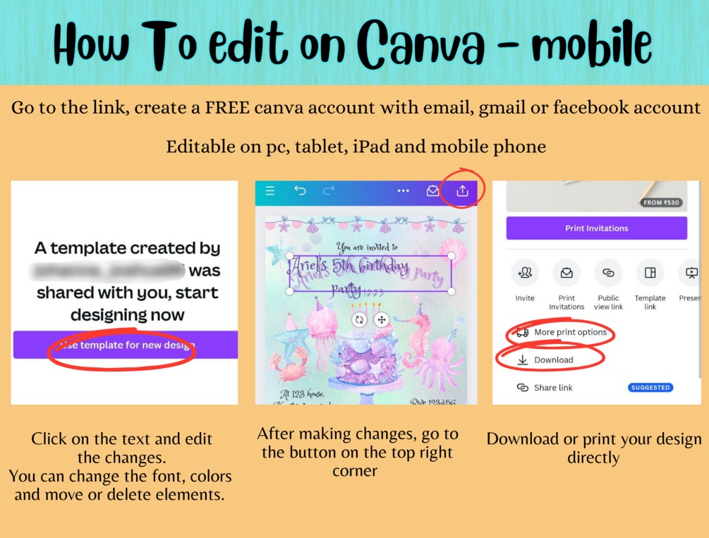 Edit the text details and use the card as is, or change font, color, add or remove elements in Canva.com. Its easy, all you need is your email account.