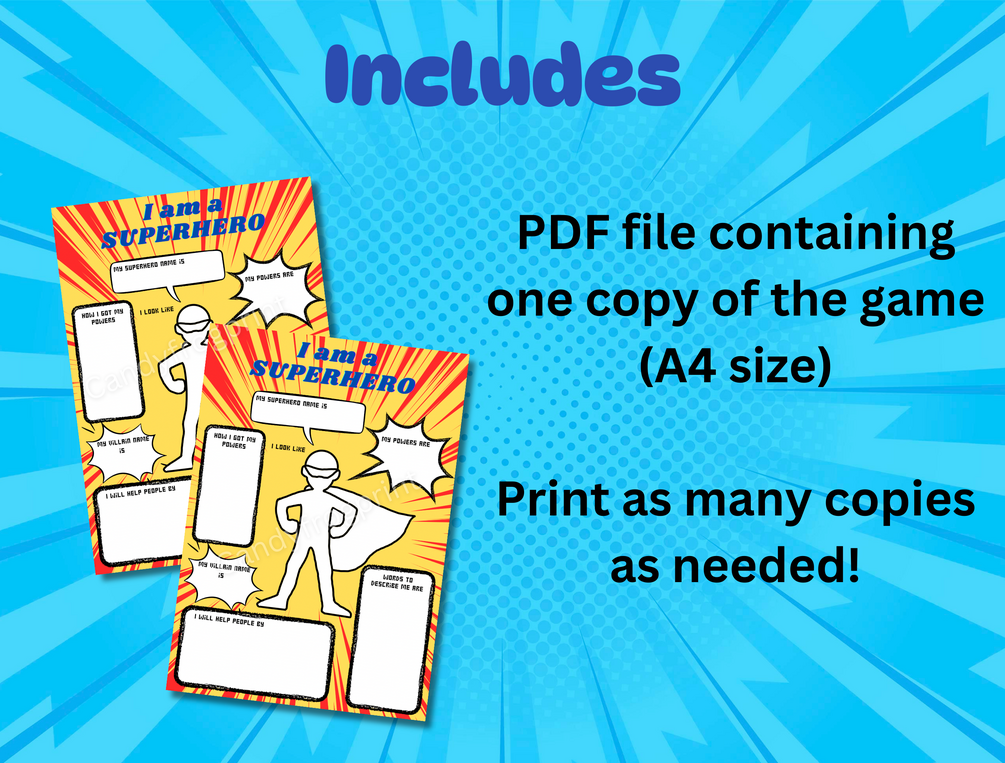 💨 1 PDF file containing a copy of game ‘’ I am a Superhero " (A4 size)